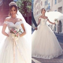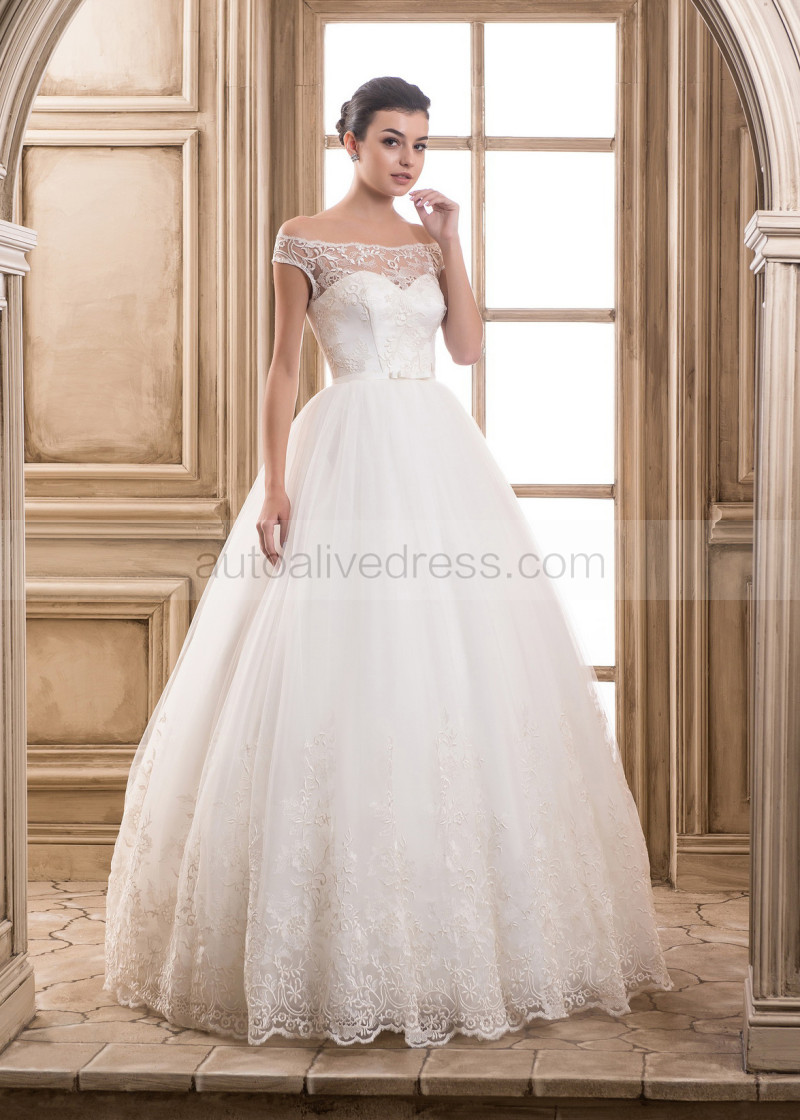 Ball Wedding Dress Tulle Lace Applique Off Shoulder Princess