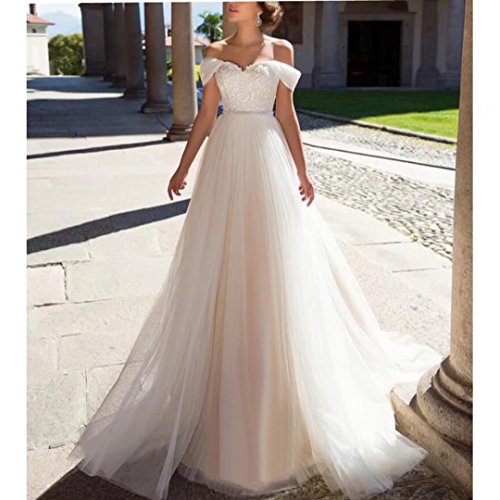 Beach Wedding Dresses Lace Embroidery Off Shoulder Bridal Gowns