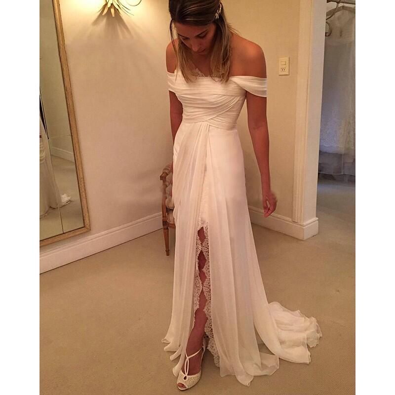 Exquisite Off The Shoulder Wedding Dresses With Split 30d Chiffon