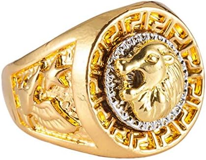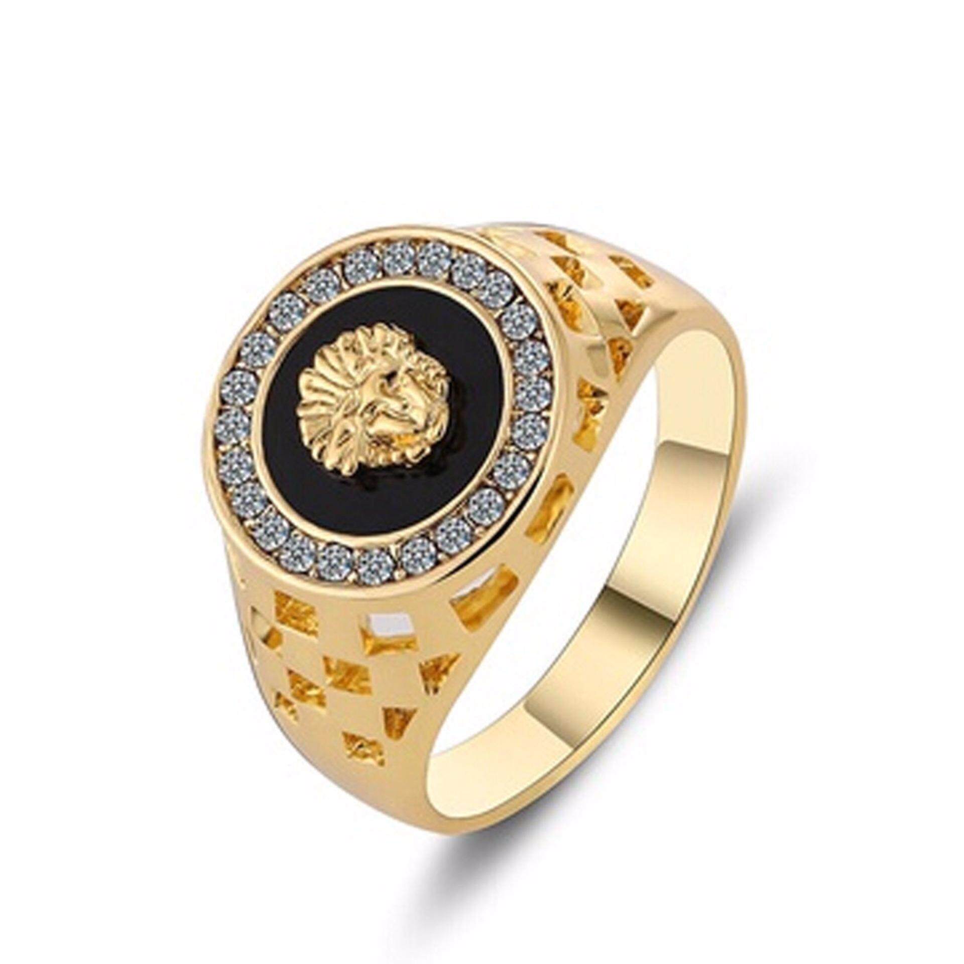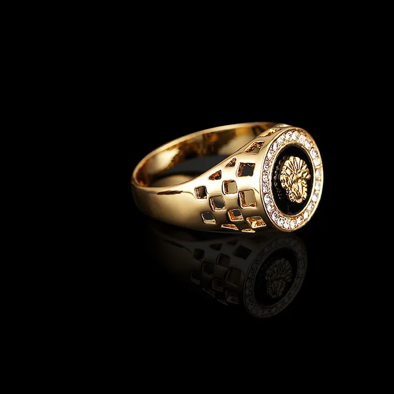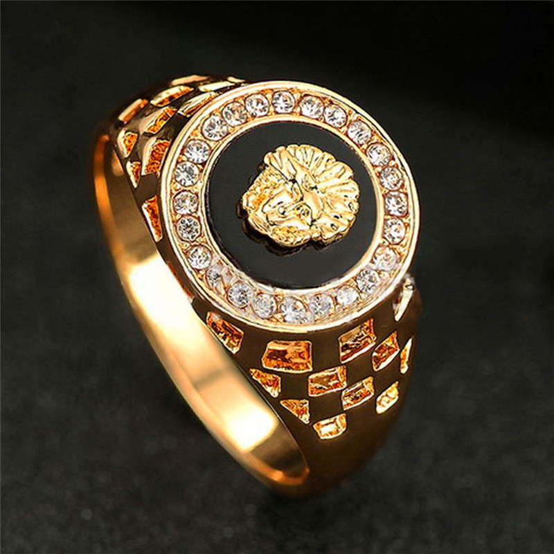 18krgp Vintage Male Gold Lion Head Ring For Men Wedding Engagement