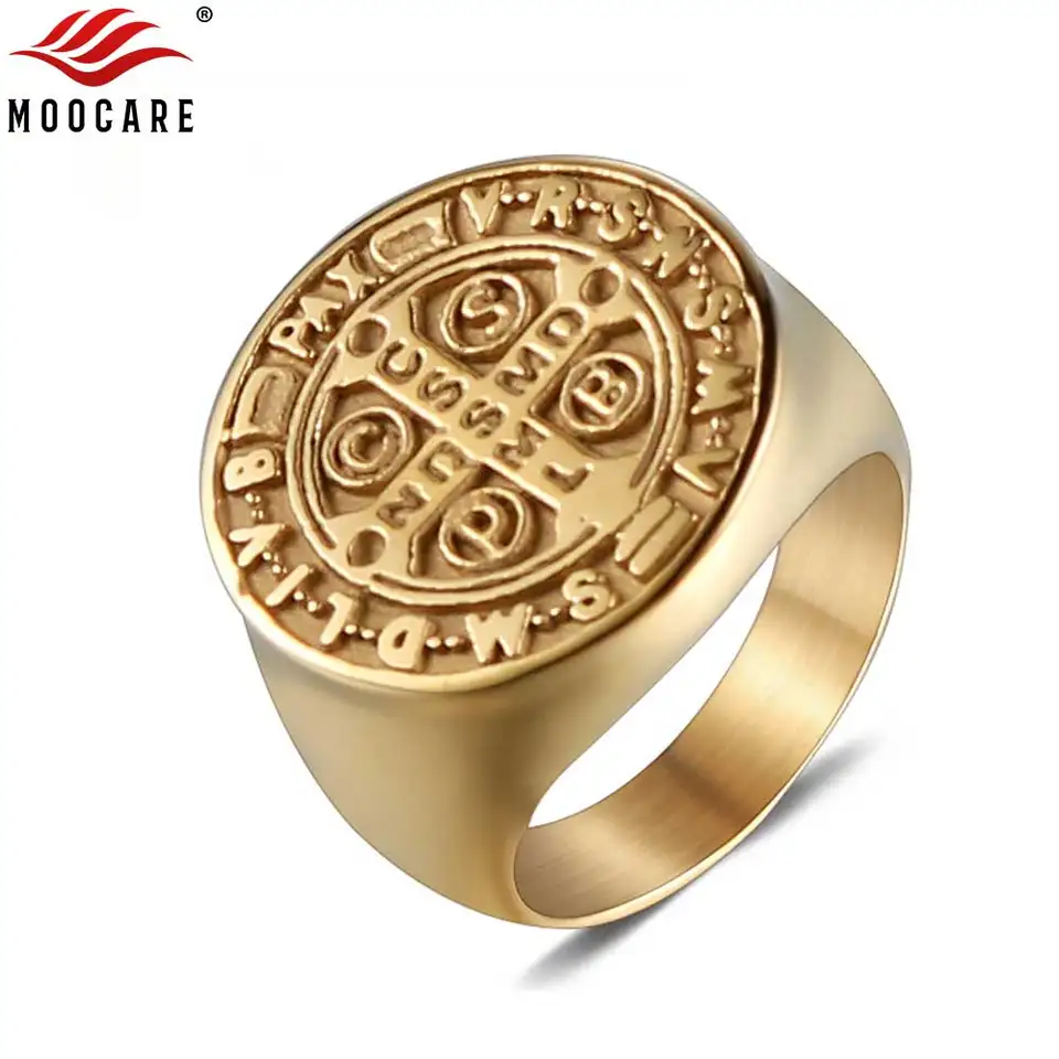 Moocare Men Pleated Gold Punk Ring Vintage Male Titanium Wedding
