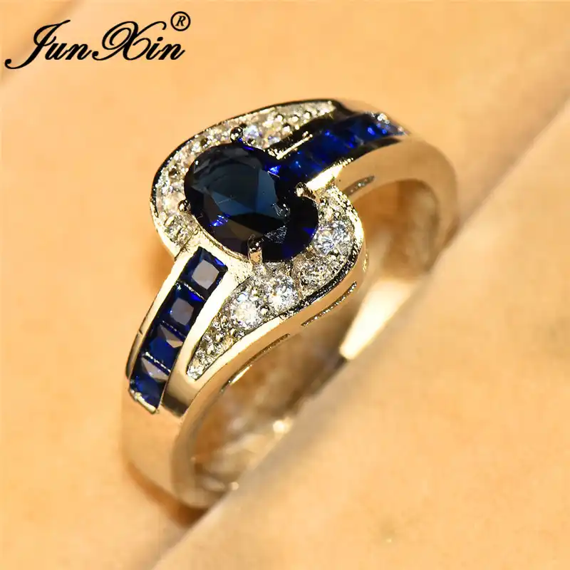 Junxin Vintage Male Female Oval Stone Blue Pink Purple Zircon