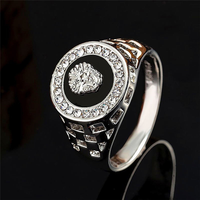 18krgp Vintage Male Silver Lion Head Ring For Men Wedding