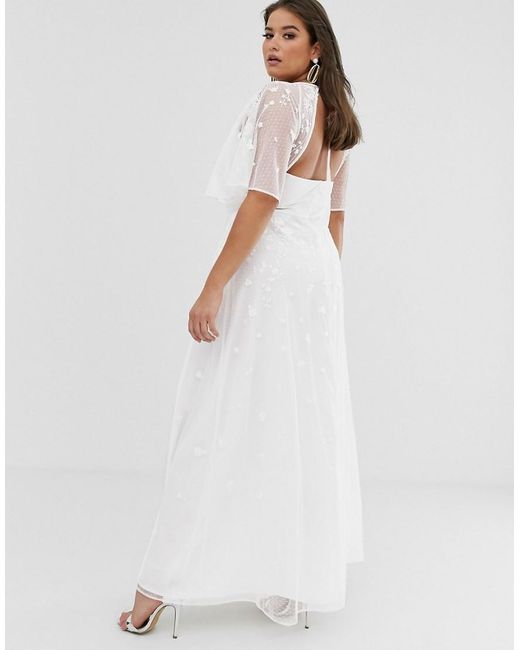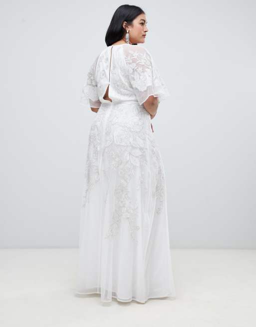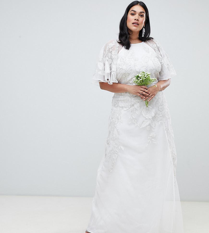 Asos Edition Curve Embroidered Flutter Sleeve Maxi Wedding Dress