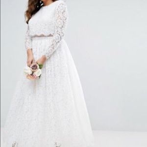 Asos Edition Curve Bridal Lace Long Sleeve Crop Top Maxi