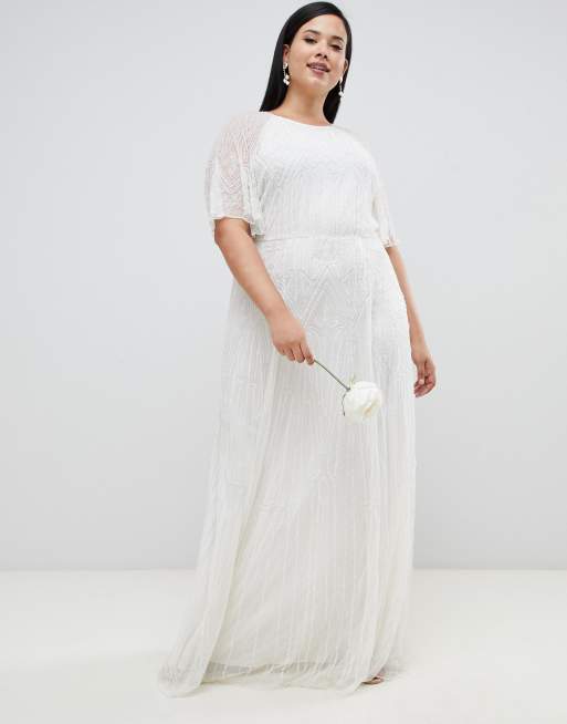 Asos Edition Curve Flutter Sleeve Sequin Maxi Wedding Dress C0fdd1