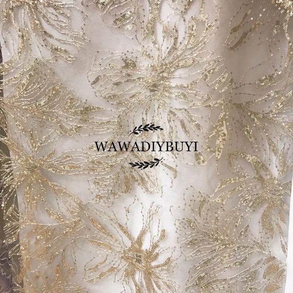 Delicate Champagne Gold Embroidery Sequins Wedding Dress Etsy