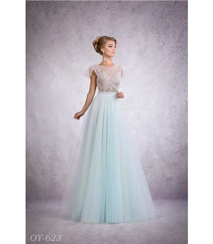 Gold Embroidery Appliques Sky Blue Evening Ball Gowns Puffy Women