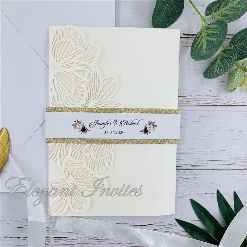 Elegant Flower Ivory Wedding Invitations Laser Cutting Invitation