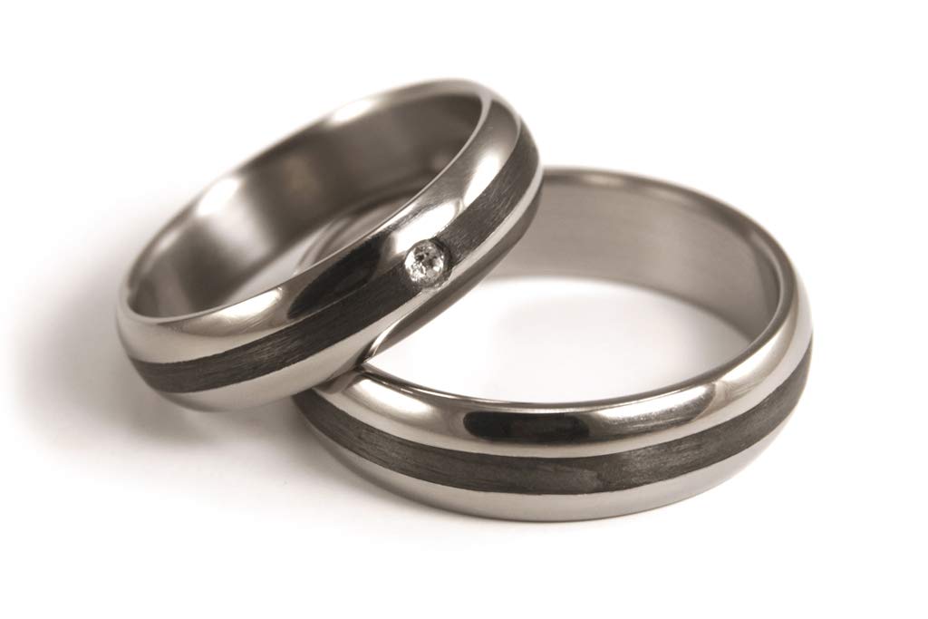 Titanium And Carbon Fiber Wedding Bands With Swarovski Crystal