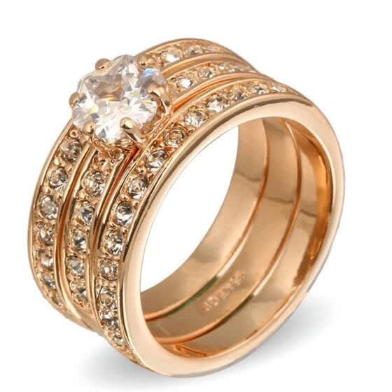 Shop Crystal 3 Round Rose Gold Plated Ring Jewelry Made With