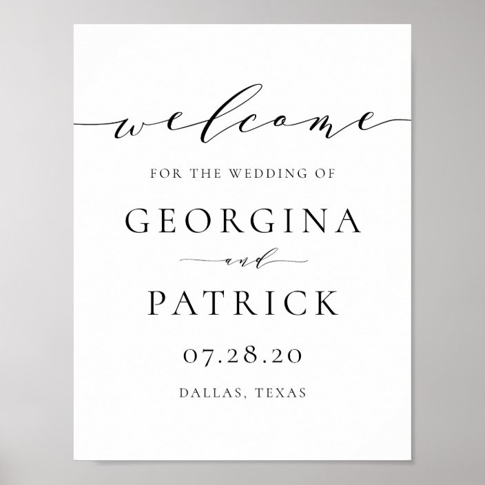 Black Dainty Script Wedding Welcome Sign Zazzle Com