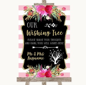 Wedding Sign Poster Print Gold Pink Stripes Wishing Tree Ebay
