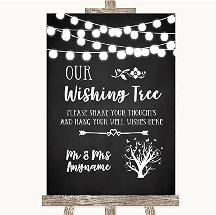 Wedding Sign Poster Print Chalk Style Black White Lights Wishing