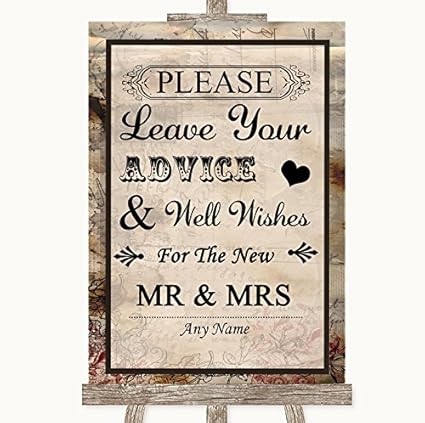Wedding Sign Poster Print Vintage Guestbook Advice Wishes Mr