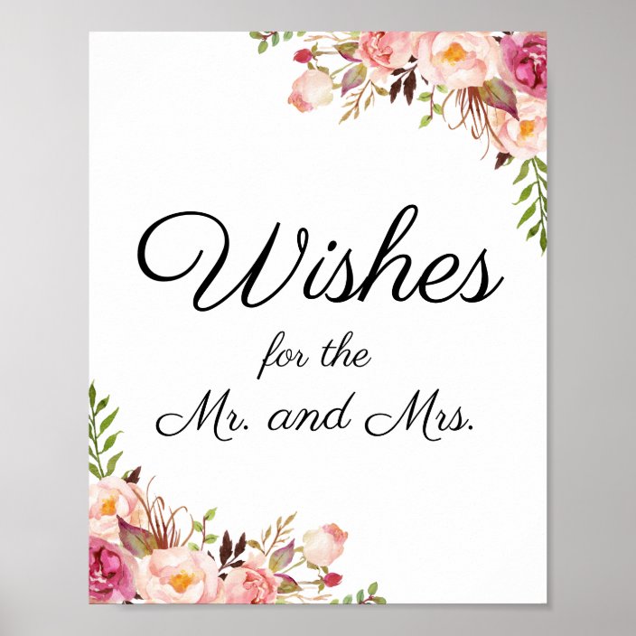 Rustic Pink Floral Wedding Wishes Sign Poster Zazzle Com